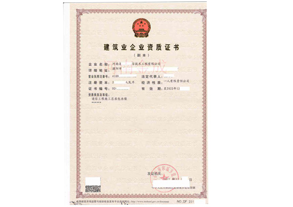 • 建筑業企業資質證書副